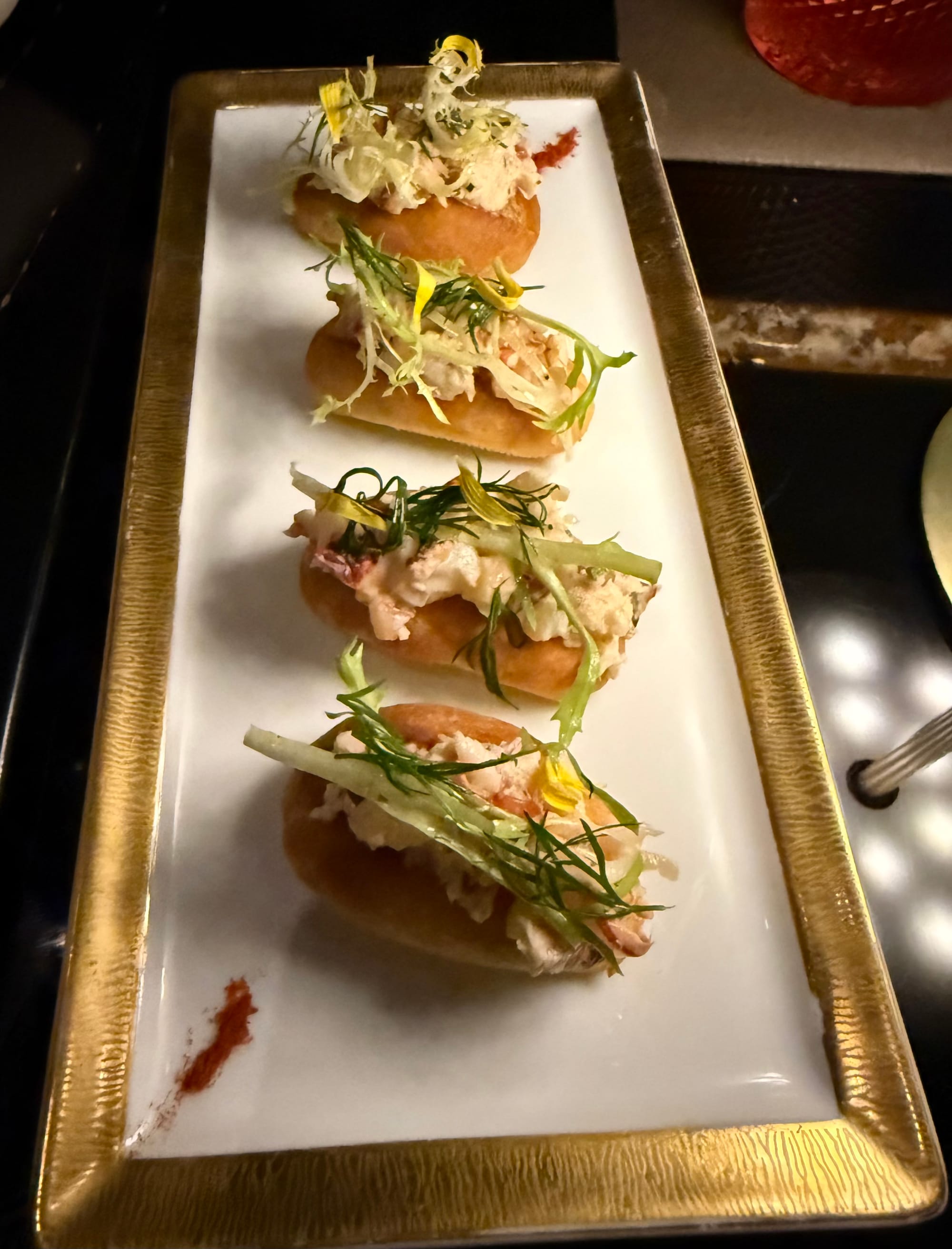 I can't say as much for the Petite Lobster Rolls, which was my most anticipated dish when previewing the menu during the preceding days. There were four wee sandwiches with the cold crustacean meat topped with frisée salad and citrus zest, but unfortunately the admittedly adorable tiny buns were weirdly stale, and the ratio of meat to roll was far from ideal. The actual lobster tasted good, but it was hard to appreciate given there was so little of it compared to the dry, unappetizing bread. What a shame.