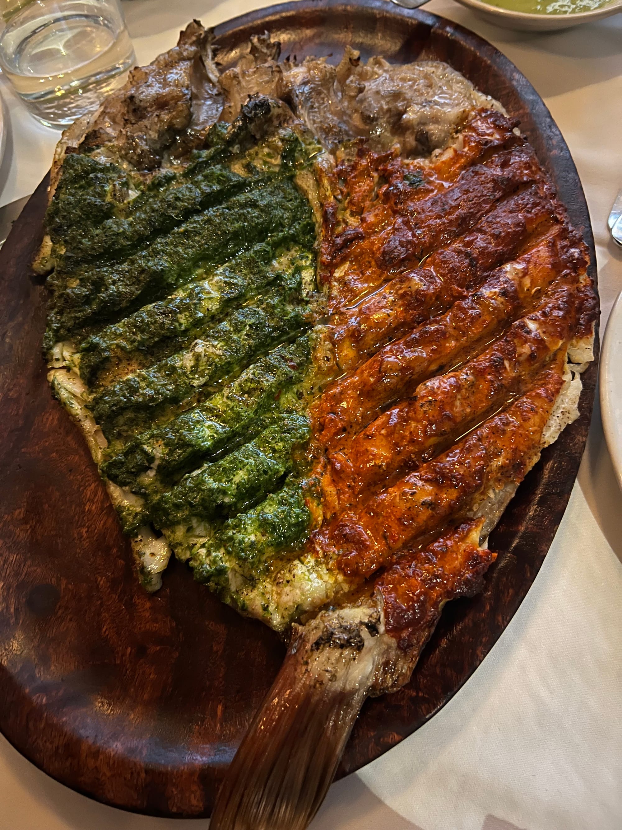 Quick hitters on a few other items ordered at the table: shrimp cocktail had a sauce that was much more complex than what you'd get at most U.S. spots. A shrimp pasta was extremely unremarkable... al dente pasta with some sauce that you could have gotten from a jar. The signature pescado a la talla Contramar was a well-cooked red snapper smothered half in red adobo sauce and half in green parsley sauce (a chiles en nogada-esque nod to the Mexican flag). Personally I preferred the green, but the majority of the table seemed to like the red side better.
