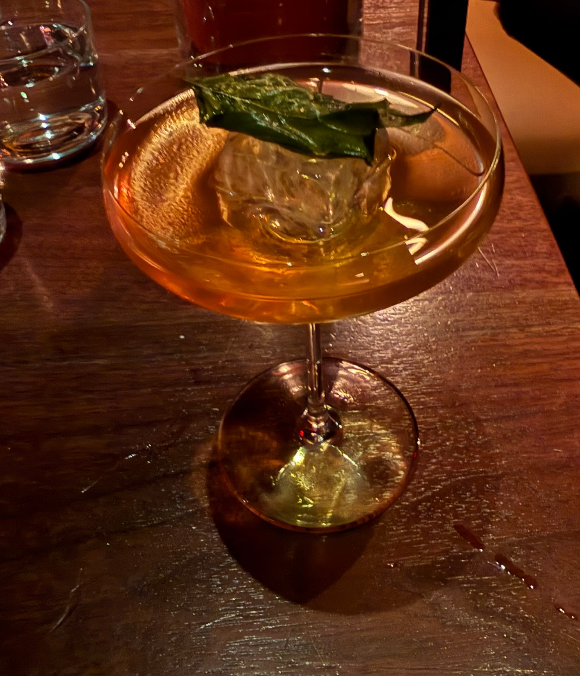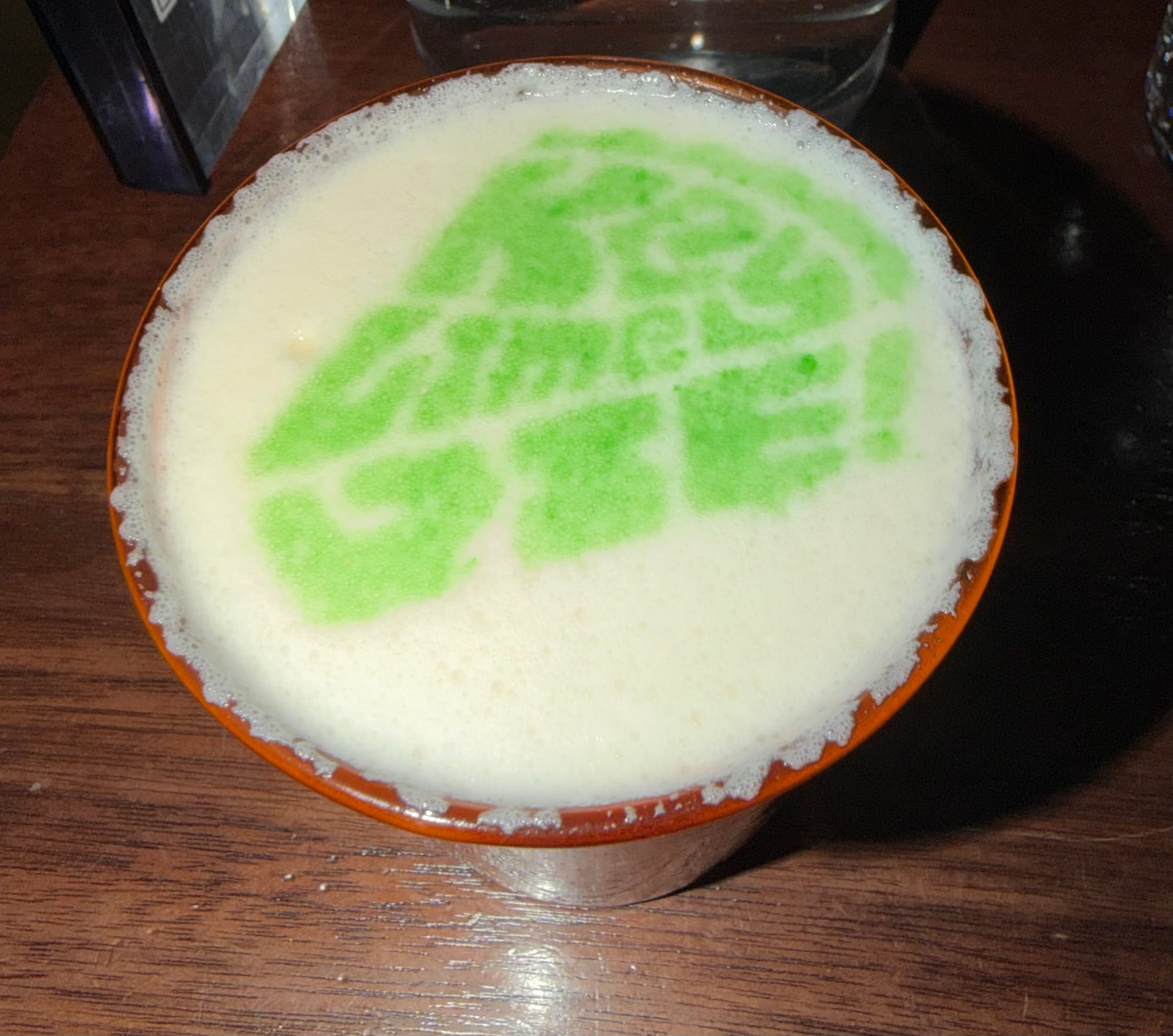 One other drink I have to shout out: the sensational Key Lime Pie. Gin, winter melon, sweet cream, egg white, lime, soda, and something called "The Plum, I Suppose" combine to not only mimic the eponymous pastry, but actually exceed any KLP I've ever had. The tangy citrus was there of course, but they also managed to replicate the classic graham cracker crust flavor, and even a bit of the texture. Not to mention the fun green 3D-looking logo featured on top (see photo below). You're probably wondering what the hell The Plum, I Suppose is (other than a line from a Robert Frost poem), and I'll be honest, so was I. Turns out it's a Danish spirit from a company called Empirical which comes from kernels of plum stones (?) and distilled marigold kombucha (??), teaming up to create an almondy marzipan flavor (????) that I guess delivers part of that aforementioned crust taste. Absolutely bonkers.