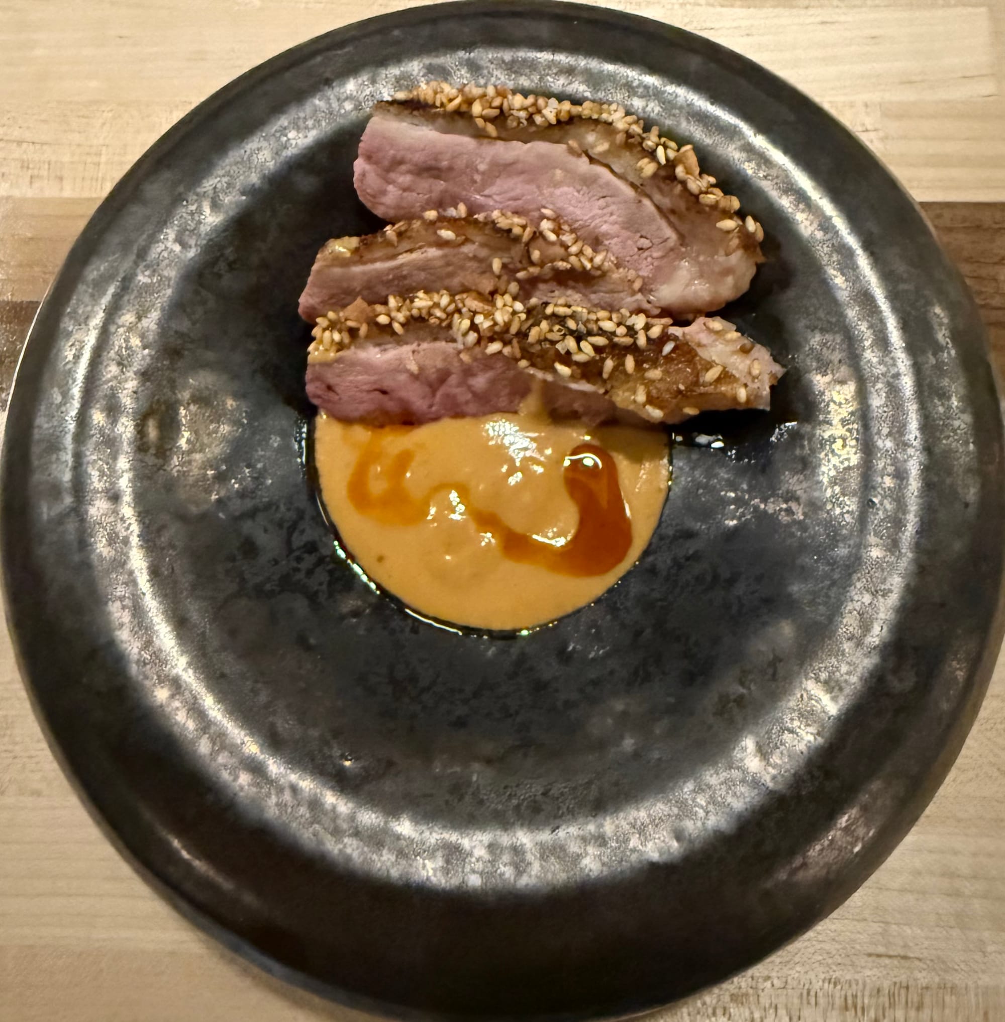Lest I sound too negative, the next couple of dishes were really tremendous. The Dry-Aged Duck had exquisitely seared breast slices crusted in golden sesame seeds, plated over a Szechuan-inspired sesame puree with XO sauce and chili oil. Your boy loves a nice (duck) breast, and this interesting, Asian-leaning preparation was perfectly cooked, with a deep nut (phrasing) taste and some pops of umami and spice from that criminally underrated Hong Kong condiment. Interestingly, while it gets its name from XO cognac (extra-old, e.g. Hennessy), this sauce doesn't actually contain any liquor: apparently in the 1980's when it was developed, the spirit was considered very chic in Tsim Sha Tsui, so they just lifted the name. It's even marketed in packaging with similar color schemes to Remy Martin etc..