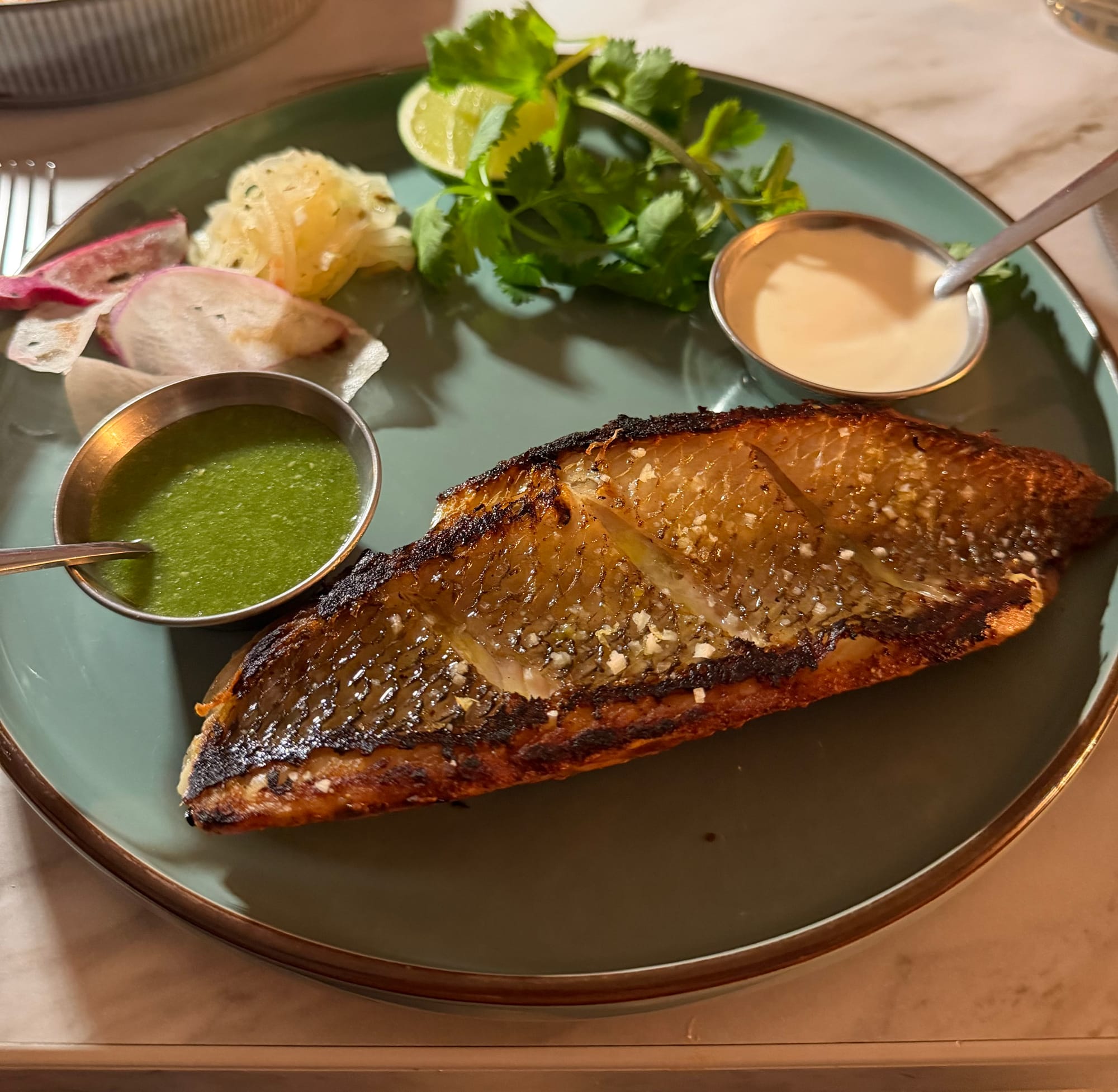 I was also fortunate to sample the Grilled Texas Redfish, a glistening filet simply plated with a habanero crema, xnipec (a Yucatan habanero salsa), radish, cilantro, lime, and corn tortillas. This is an extremely gringo opinion, but flour tortillas are generally far superior... however, the masa guy here clearly knows what he or she is doing, as these were nearly as good as the aforementioned 50/50 variety. Both condiments had a lovely heat, and the fish was nicely cooked as well.