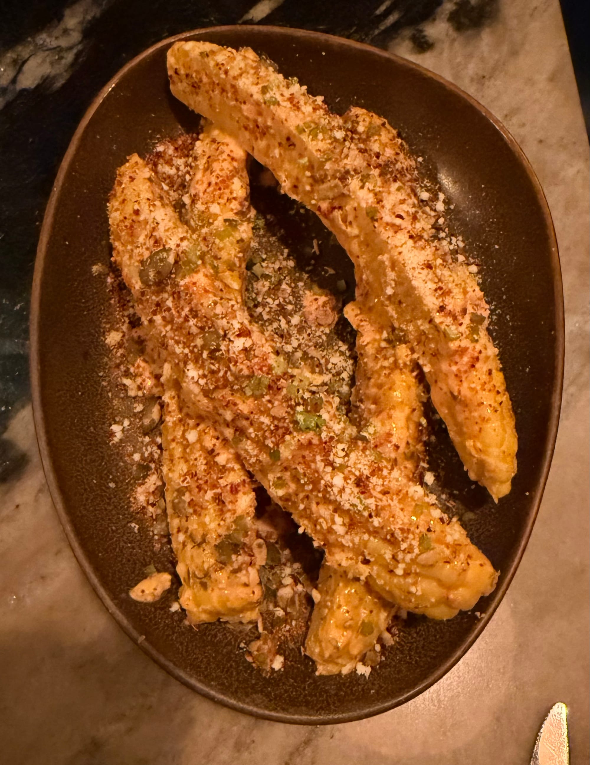 A trend I've observed recently that I am a huge fan of is Corn Ribs. A full cob is quartered, seasoned, and roasted until it curls up into a rib-like shape, and then topped with various accoutrements. Here it was done elote-style (cuarto-elote?), with chipotle mayo, cotija cheese, chili powder, pepitas, and cilantro. The corn was juicy, the sauce creamy, and a kick of spice really made this a fantastic appetizer. I'm not always a huge fan of eating messy things with my hands, but I definitely couldn't help licking my fingers clean after this.