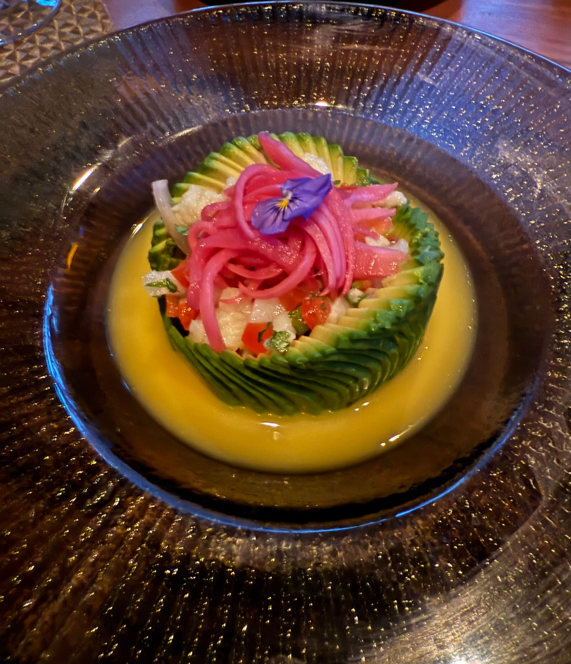 juice in this dip that should be next to impossible to screw up. The acid assault continued in a yellowtail ceviche that nearly blew out my palate. Citrus is by definition an essential part of this dish, but my goodness you need to have some balance, as I could hardly taste the fish. Though I must give credit where it's due: the presentation was gorgeous, with a ring of sliced avocados supporting the diced fish, onions, and tomatoes.
